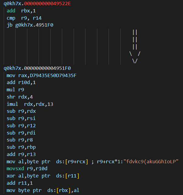 Second stage supposes the use of another piece of code. An ASM blob, designed to decrypt, load, and run the specific part of the Emotet’s DLL, is a final stage before seeing the actual execution of this malware. Similar to previous stages, it allocates memory and sets a PAGE_EXECUTE_READWRITE protection, and dumps the decrypted contents of the DLL. But to run it, this code calls VirtualAlloc once again, in order to remap the sections to a different memory location. Only then, the code is getting executed.