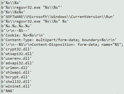 | Update/remove | Updates the Emotet binary on the machine. A specific variable will command the malware to perform self-destroying. Has a number of 1. |