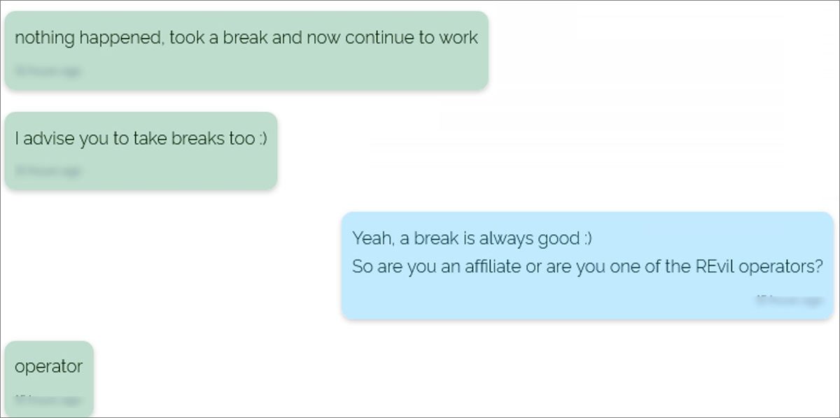 However, Bleeping Computer’s own sources told the media that REvil’s disappearance came as a surprise to law enforcement. For example, the publication provides a screenshot of a chat between an information security researcher and a representative of REvil, where the latter says that the ransomware operators simply took a break.